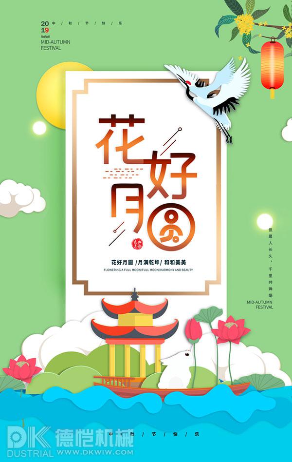 人間最美是金秋,五谷飄香豐收樂;一年最圓中秋月,桂樹玉兔伴嫦娥;人生最暖是團圓,翹首盼望團圓節;最美季節賞圓月,快意人生幸福多。德愷機械全體員工祝大家中秋節日快樂!